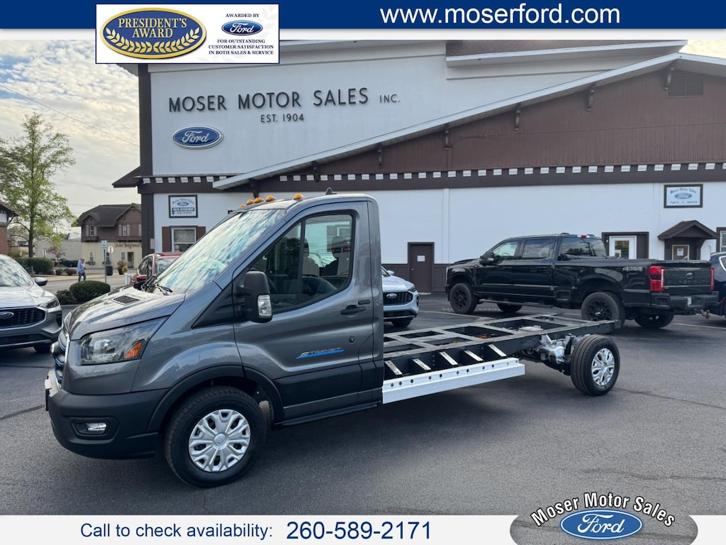 STOCK#RT0235This is a one-owner E-Transit cab and chassis that we purchased directly from Ford Motor Company. Do not confuse this with an ex-rental vehicle, so common in the marketplace. It also has a Clean AutoCheck history report.This E-transit is equipped with these key items:ProPower Onboard rear view camera forward and reverse sensing lane keeping long arm heated power adjustable mirrors blind spot alert12 touch screen display FordPass connect apple carplay/android auto It has a Ford Factory Warranty for 3 years or 36,000 miles bumper-bumper, 5 years or 60,000 miles powertrain and 8 years or 100,000 miles EV components.Give us a call today at 260 589 2171 to check the vehicle's availability and to schedule a test drive. -----We have earned Ford's prestigious President's Award 15 years for quality business practices and outstanding customer satisfaction. Moser Motor Sales was established in 1904 by AJ Moser in downtown Berne Indiana. Today it is a 4th- and 5th-Generation Family-Owned Ford Dealership - the oldest family-owned Ford dealership in the State of Indiana and one of the Nation's oldest dealerships. Its current owners attribute the longevity of the company to a strong foundation built by their forefathers to great employees and to a loyal customer base. Check out our reputation of excellence as reviewed by both service and sales customers. The only additional fees to your sales price are a $148 document preparation fee - one of the lowest in the region - and sales tax as required by the State of Indiana. Fair Prices. Award-winning Sales and Service. No Surprises. Come join the family of satisfied customers at Moser Motor Sales.