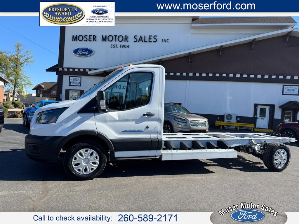 STOCK#RT0248This is a one-owner E-Transit Chassis that we purchased directly from Ford Motor Company. Do not confuse this with an ex-rental vehicle, so common in the marketplace. It also has a Clean AutoCheck history report.This E-Transit is equipped with these key items:lane keeping pro power onboardapple carplay/android auto fordpass blind spot alert bluetooth 178 wheelbaseEach Moser Motor's vehicle receives a full service and inspectionIt has its remaining Ford Factory Warranty for 3 years or 36,000 miles bumper-bumper and 5 years or 60,000 miles powertrain (from the in service date).Give us a call today at 260 589 2171 to check the vehicle's availability and to schedule a test drive. -----We have earned Ford's prestigious President's Award 15 years for quality business practices and outstanding customer satisfaction. Moser Motor Sales was established in 1904 by AJ Moser in downtown Berne Indiana. Today it is a 4th- and 5th-Generation Family-Owned Ford Dealership - the oldest family-owned Ford dealership in the State of Indiana and one of the Nation's oldest dealerships. Its current owners attribute the longevity of the company to a strong foundation built by their forefathers to great employees and to a loyal customer base. Check out our reputation of excellence as reviewed by both service and sales customers. The only additional fees to your sales price are a $148 document preparation fee - one of the lowest in the region - and sales tax as required by the State of Indiana. Fair Prices. Award-winning Sales and Service. No Surprises. Come join the family of satisfied customers at Moser Motor Sales.